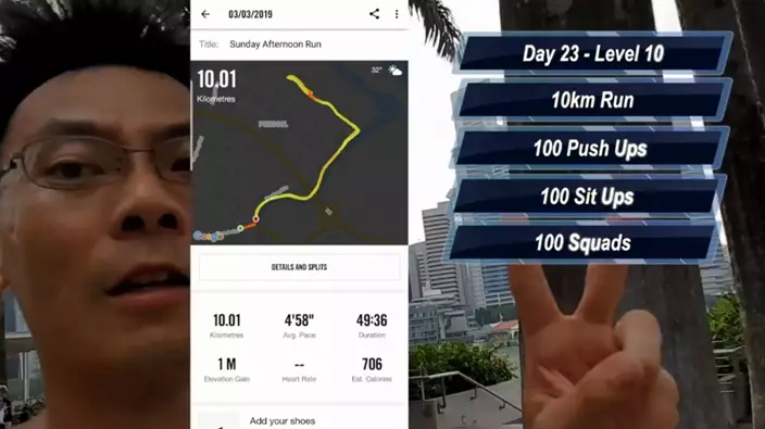 到了第22天,Sean Seah 將訓練強度提升到第9級。(網上圖片)
