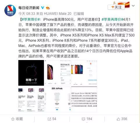 其中,iPhone XS/MAX降價500元,iPad、Mac降價幅度300-500元不等。