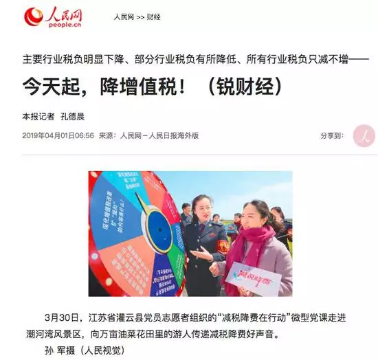 降低增值稅「大禮包」4月1日起開始“發放”——製造業等行業的適用稅率由16%降至13%,交通運輸、建築等行業適用稅率由10%降至9%。