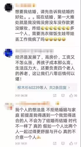 北京大學社會學系教授陸傑華曾表示,隨著經濟社會的發展,代際間的婚育觀念已經發生了很大的改變,對於很多「80後」、“90後”而言,晚婚、不婚等現象越來越常見,社會包容度也在提高,婚姻不再是唯一的選擇。