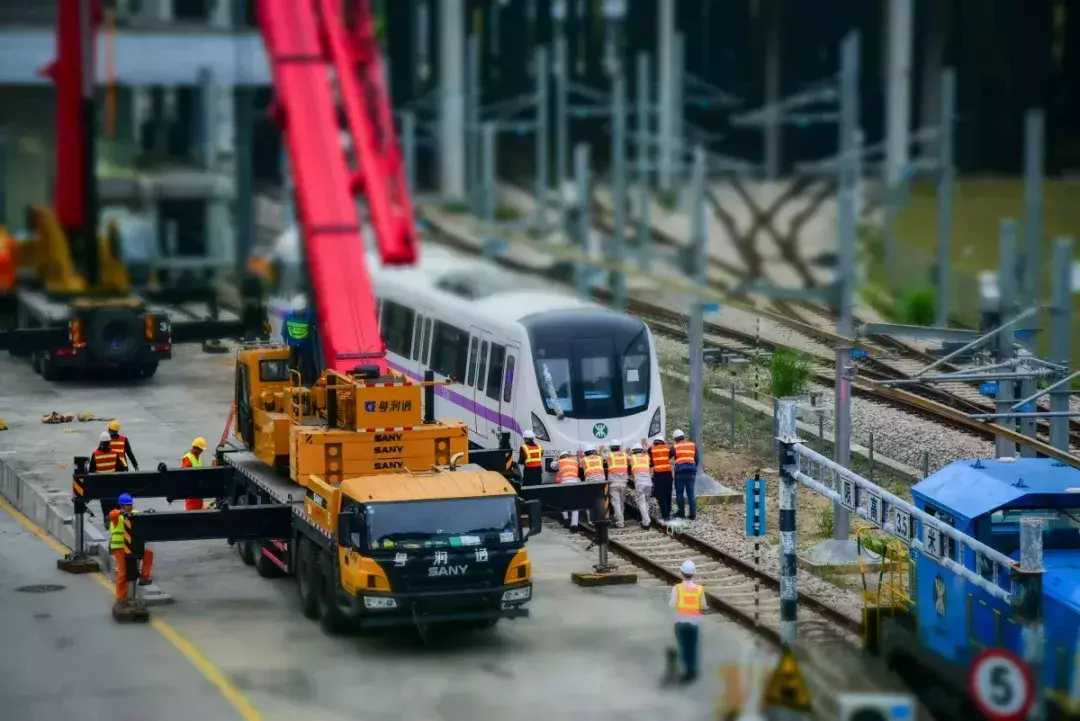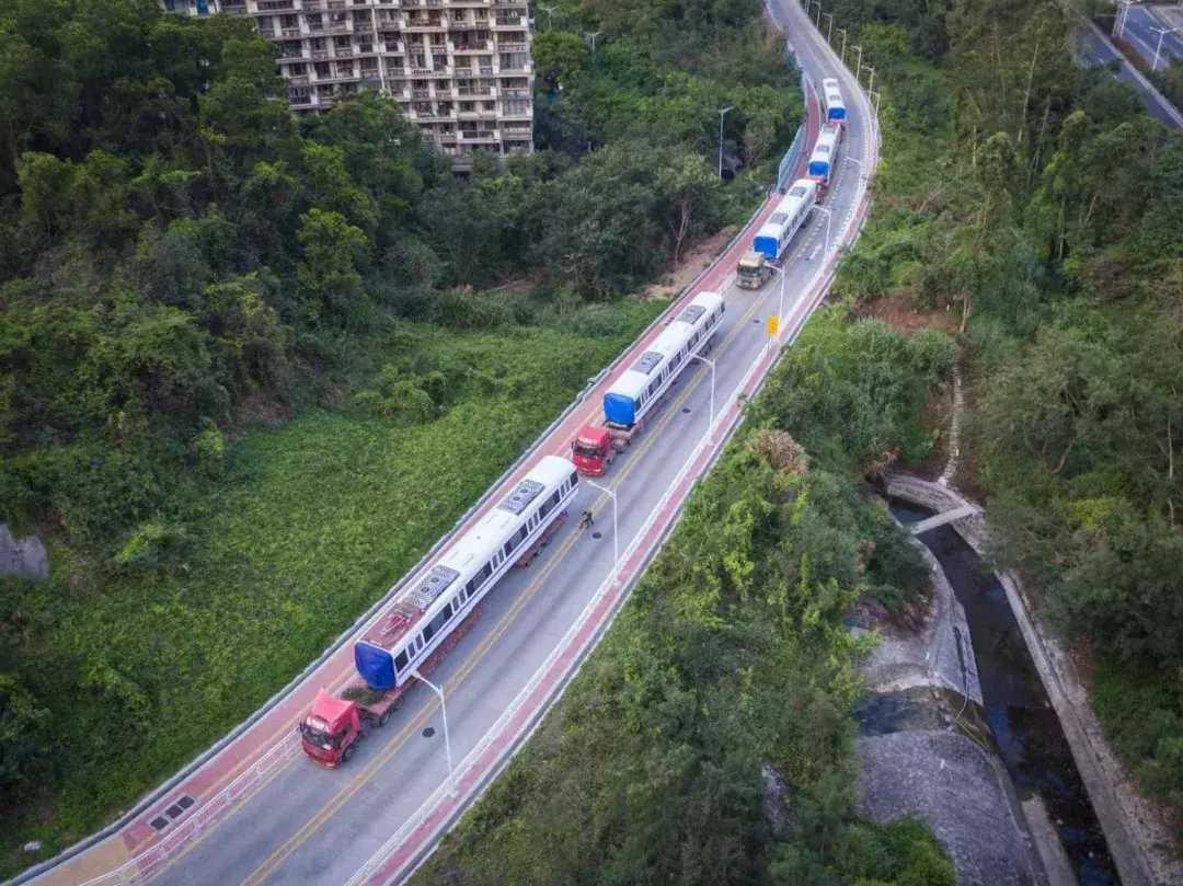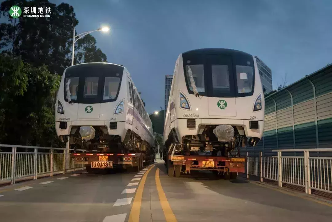 列車「乘坐」平板卡車從中車株機廠起運,經過近1000公里的鐵公路運輸,最後抵達深圳深雲車輛段。
