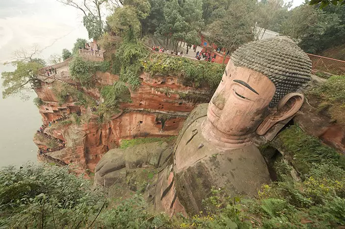 四川樂山大佛是世界現存最大的石刻坐佛像,由於胸腹開裂受損、臉部嚴重「黑斑」堆積,2018年「十一黃金周」結束後便展開修復工程,關閉佛腳平台及九曲棧道。歷時6個月,「美容」後的大佛盛裝歸來,重新「露臉」。
