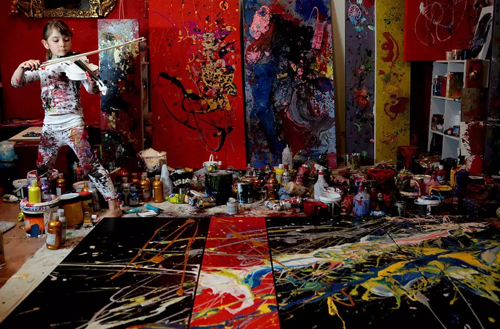 7歲的Aelita Andre,在藝術家庭長大,她9個月大時,穿著紙尿褲,已經爬到爸爸的畫布上,拿起顏料並混合。「她沒有意識到這是藝術生涯的開始」Aelita爸爸說。Aelita的媽媽是音樂家,她指囡囡的畫畫天分令人驚嘆,她這麼小已經知道自己的興趣和想要的生活。