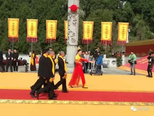 祭祖大典共分為擊鼓鳴炮、敬獻花籃、凈手上香、敬獻貢品、恭讀祭文、行施拜禮、樂舞告祭、高唱頌歌、祈福中華九項儀程。