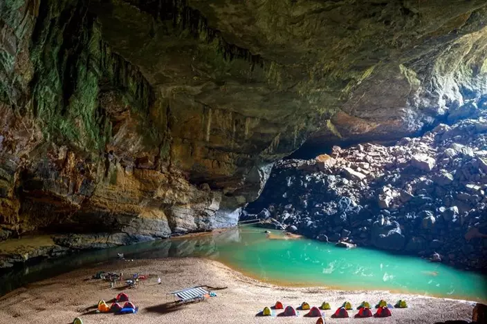 韓松洞位於越南風牙者榜國家公園,1991年首次由當地居民發現洞口,但是直到2009年,才被越南和英國的洞穴考察小組宣佈正式發現,並稱「這個洞穴是有史以來人類發現的最大天然洞穴,可以將整個紐約市容納在內。當時估計洞穴全長近5公里,最高處約200米,寬則有150米,推論約在200萬到500萬年前形成。