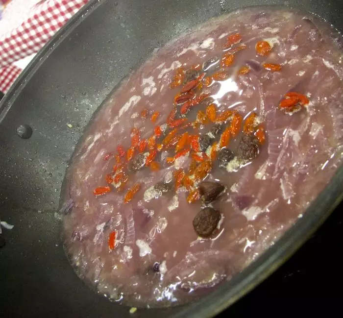 4. 最後加入龍眼、杞子及調味,煲約10分鐘即成。