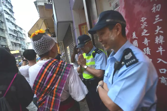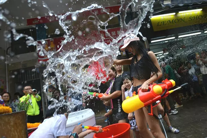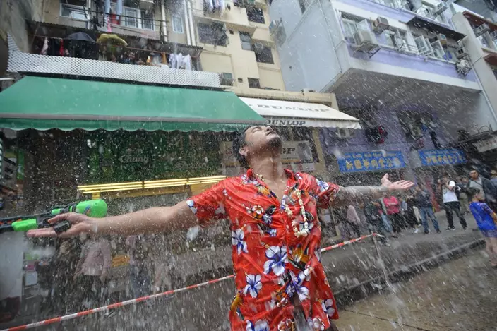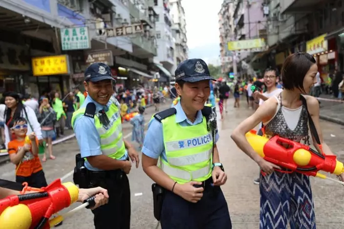 不少市民、一家大細、旅客和居港泰國人,手持水槍和水桶向途人潑水,慶祝泰國新年,十分熱鬧。有商戶及街坊更「空襲」,從樓上向街道射水及潑水。而警員在維持秩序之餘,亦與民同樂。