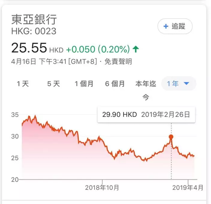 今年2月,東亞在公布業績前大福炒上,股東憧憬東亞一百周年會派好高的特別股息。後來東亞公布業績,2018 年純利65.09 億元,較2017年的93.47億元,大跌30%。若不計2017年的30.5億特別利潤,東亞2018年純利亦只增長3.4%。去年,東亞被剔出恆生指數成份股,可見華資銀行風光不再。