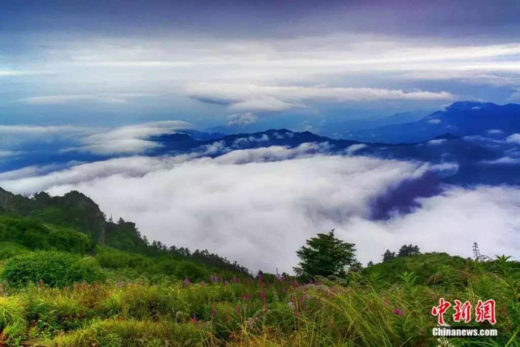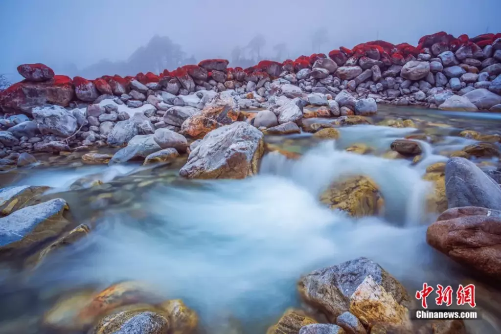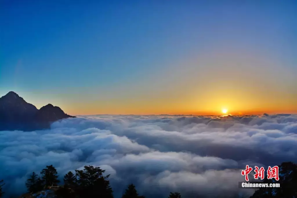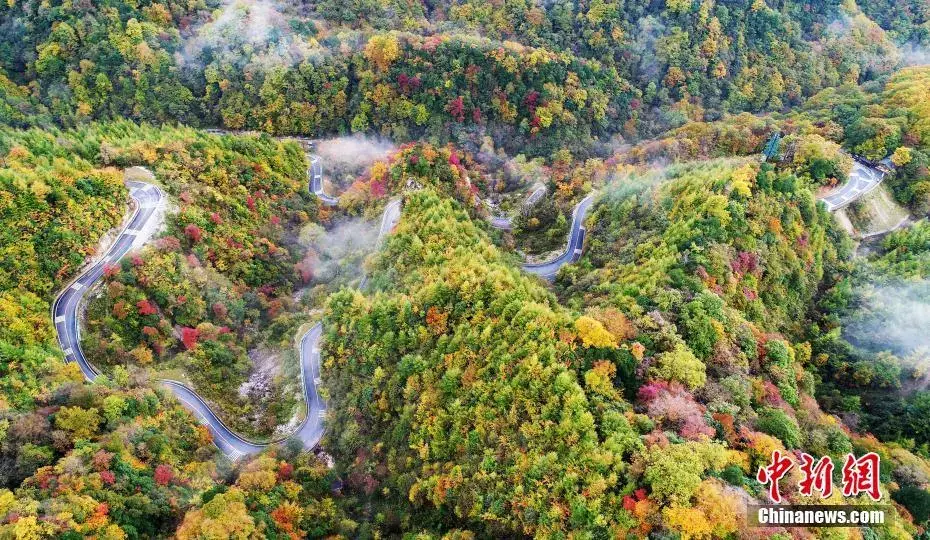 四川光霧山層林盡染、雲霧繚繞如仙境。劉忠俊 攝