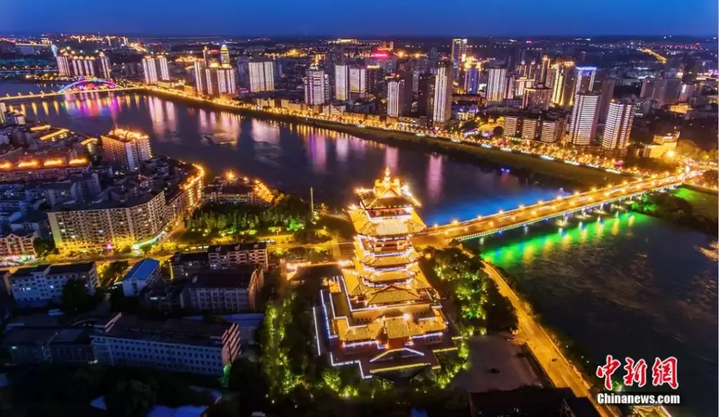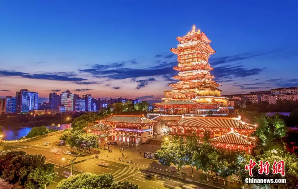夜幕下的越王樓流光溢彩。王經緯 攝
