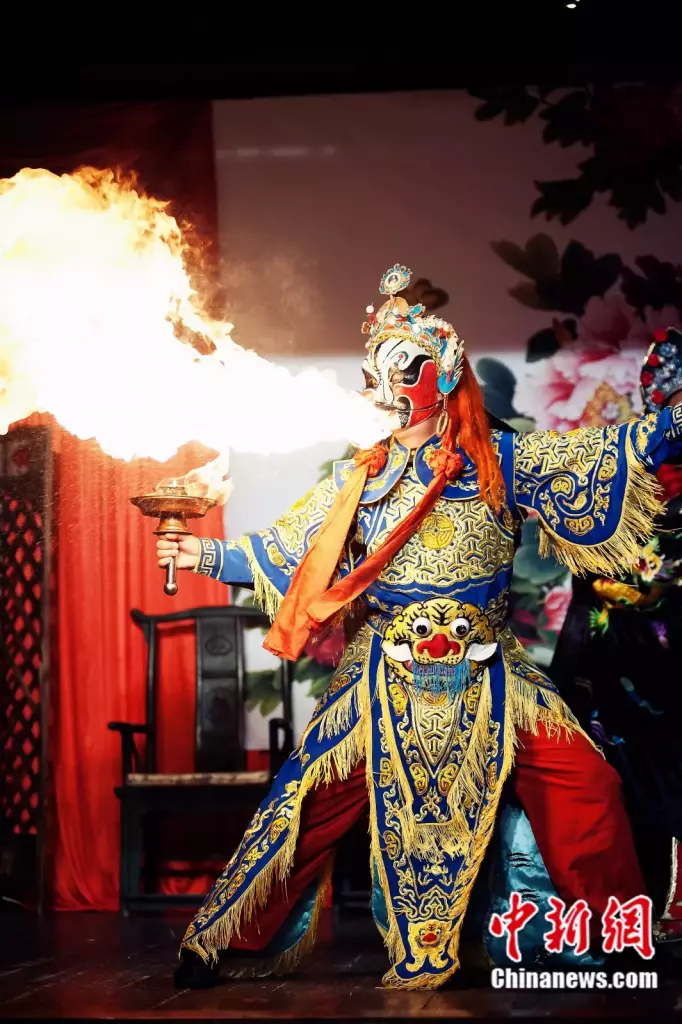 川劇之變臉、吐火。成都市政府新聞辦供圖
