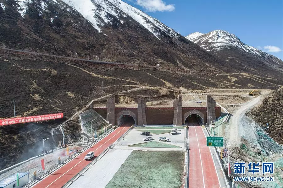 這是建成通車的米拉山隧道(4月26日無人機拍攝)。新華社記者 李鑫 攝