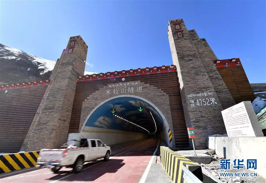 4月26日,車輛從米拉山隧道駛出。新華社記者 李鑫 攝