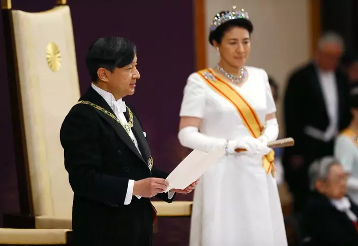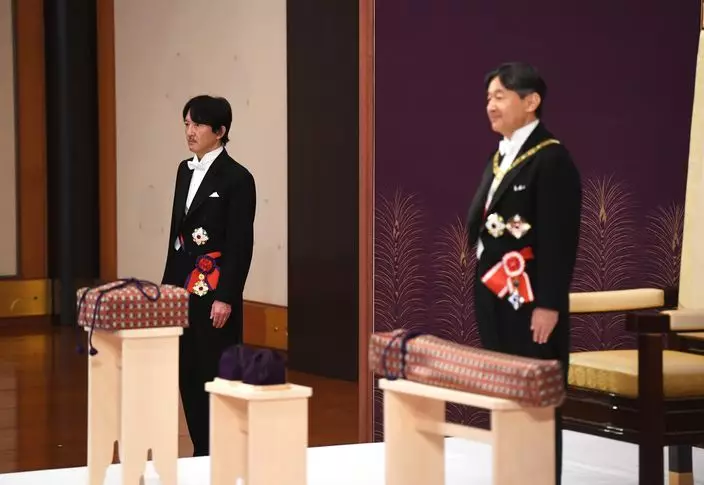 德仁繼承神器八尺瓊勾玉和天叢雲劍。AP圖片