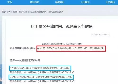 嶗山景區工作人員向記者表示,考慮到11月、12月遊客較多,目前景區旺季時間已由每年的4月-10月調整為4月-12月。但記者在景區官網看到,嶗山風景區11月、12月的主要遊覽區域開放時間仍然按照淡季標準執行,每天的遊覽開放時間比旺季少2—3小時不等。「買的是旺季的門票,享受的卻還是淡季服務,這不明擺著坑人嗎?」上海遊客何女士說。