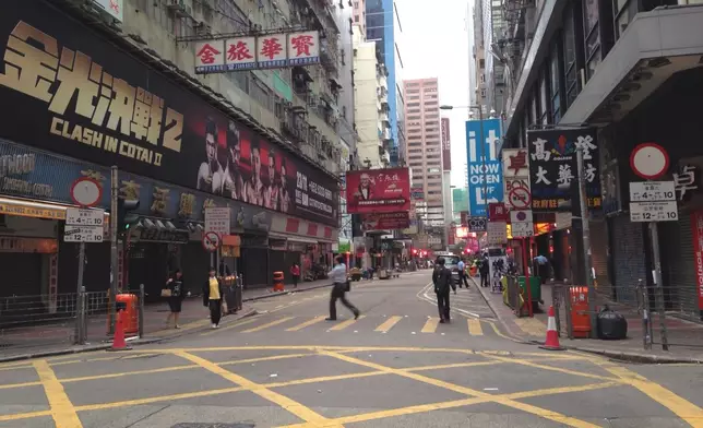 早上西洋菜南街人流不多,有多群警員分別在街頭街尾駐守,亦有警員巡邏防備有變,街口轉角位停泊幾部警車。
