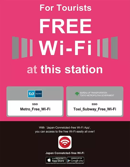 東京都政府經營的地鐵,SSID是「Toei_Subway_Free_Wi-Fi」﹔東京地鐵公司經營的地鐵的SSID則是「Metro_Free_Wi-Fi」。