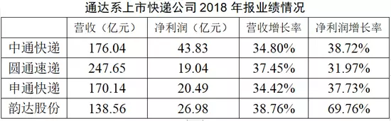 整體來看,通達系幾家快遞公司的營收水平有顯著提高,營收和凈利均實現了兩位數增長。