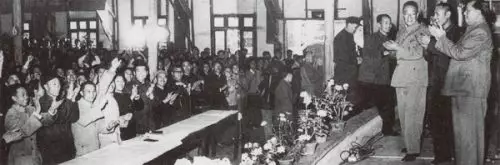機廠與上海工人一起歡度五一國際勞動節,右三為柯慶施(資料圖)