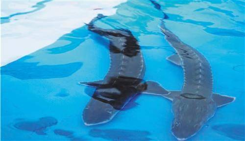 等待放流的中華鱘。 本報記者 王軼辰攝