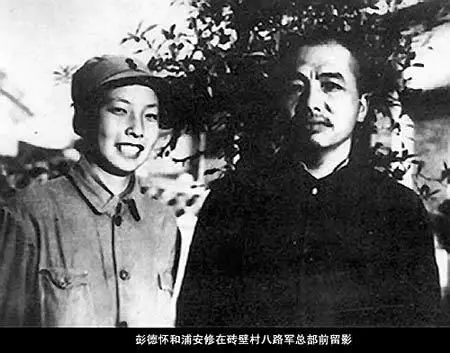 1938年雙十節,由王明的夫人孟慶樹介紹(一說陳賡介紹),40歲的八路軍副總司令彭德懷,在延安娶了北師大著名的浦氏三姐妹(潔修、熙修、安修)中的小妹、20歲的嘉定姑娘浦安修(1918-1991),婚後無子女,但共度戰爭歲月,感情甚篤。廬山會議後,浦安修幾經斟酌,終與彭德懷在60年代脫離關係。當時老彭切開一個大梨,二人各吃了一半。特殊時代,情有可原,外人也不好說三道四。