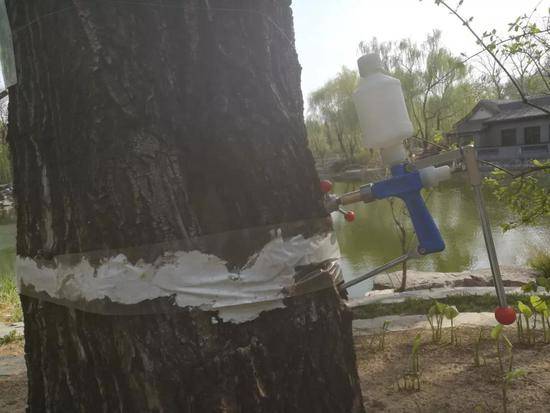 但這種方法也並不完美,抑花一號每年都要重新打,每株每次5-15元,北京市有約20萬株雌楊柳,疊加起來成本不低。同時注射操作花費一定時間,平均每人每天的操作效率為100株左右,以10萬株為標準,需要幾十個人連續施工兩個月才能完成;放在北京,需要連續施工四個月才能完成,這並不是一項輕鬆的工作。