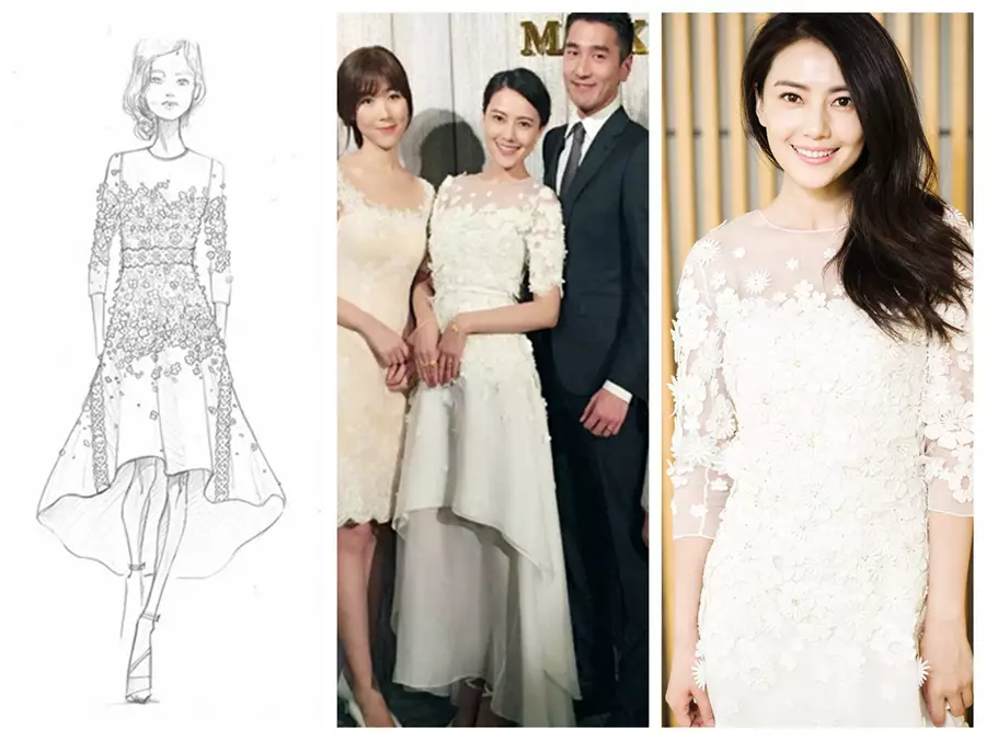 高圓圓今次不走尋常路,婚禮的主婚紗由奢侈品牌Chloe特別定製,而非女明星的愛牌Vera Wang。呢件主婚紗最特別的就是從鎖骨延伸至手臂的精美刺繡,單單是刺繡的工藝就超過50個鐘。純淨完美的look讓圓圓即刻變身為童話中的公主。