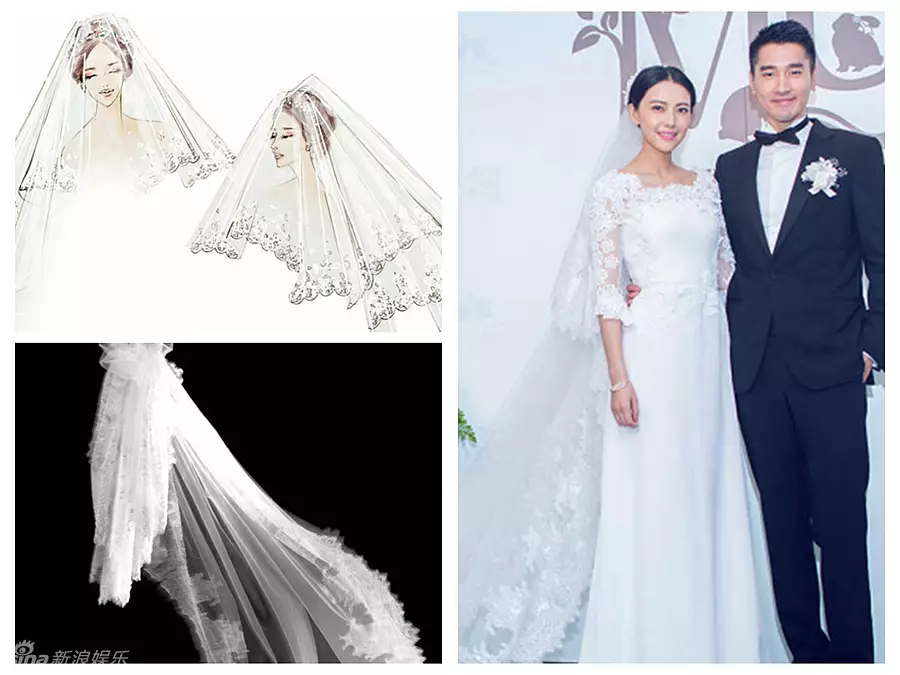 至於頭紗,高圓圓邀請本土設計師蘭玉為其量身打造,由法國喱士和水晶串珠等製作而成。