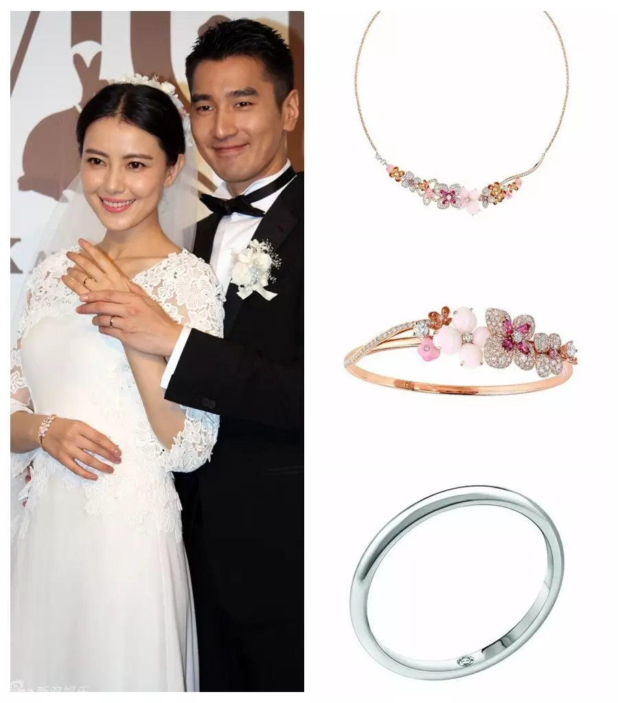 今次又圓大婚以精緻和細節取勝從新娘的細節即可體現。高圓圓選擇的捧花由內地近年興起的獨立花店「野獸派花店」定製。捧花由芍藥花團為主,花語是情有所鍾,而圓圓頭上戴的永生花喱士花冠亦來自它家。