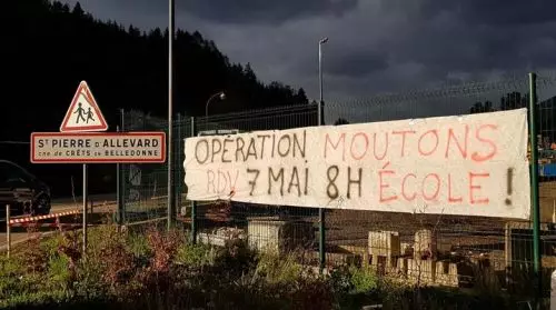 Crets en Belledonne鎮居民遊行,贊成登記羊「入學」 圖源:臉書