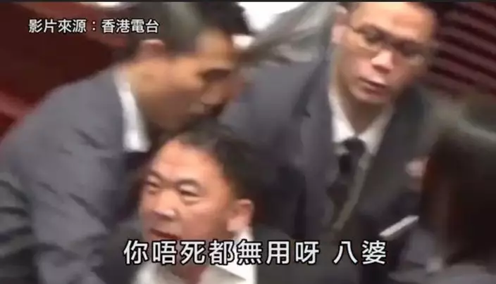 胡志偉離場時仍不斷鬧特首。港台影片截圖。