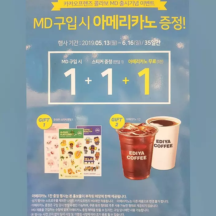 而現在更有購買優惠,凡購買任何Kakao Friends系列的商品,都會贈送卡通貼子一張,讓你可以動手DIY,裝飾出自己專屬的杯子!另外還會免費贈送一杯美式咖啡,超級抵買呢!優惠期到6月16日,有興趣的朋友就要把握機會到全韓國Ediya Coffee分店搶購了!