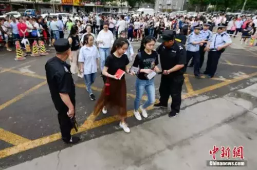 資料圖:高考考生通過安檢進入考場。中新社記者 武俊傑 攝