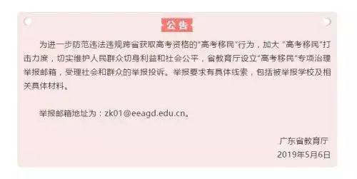 此外,廣東省教育廳還公佈了「高考移民」專項治理舉報郵箱。