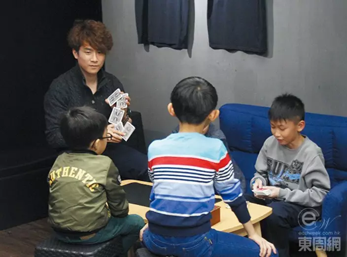 私下經營一間魔術教室的阮政峰,親自當導師,教授小朋友玩魔術。(《東周刊》圖片)