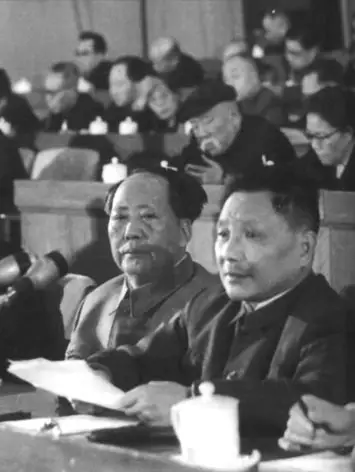 1962年1月11日,中共中央在北京召開擴大的工作會議,2月7日閉幕。又稱「七千人大會」。毛澤東、周恩來、陳雲、劉少奇、鄧小平在會場(資料圖)
