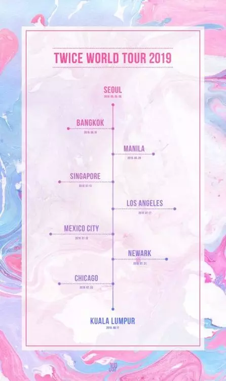 另外,《TWICE World Tour 2019 'TWICELIGHTS'》演唱會在首爾圓滿落幕後,將要去到曼谷、馬尼拉、新加坡、洛杉機、墨西哥城、紐瓦克、芝加哥和吉隆坡開唱。