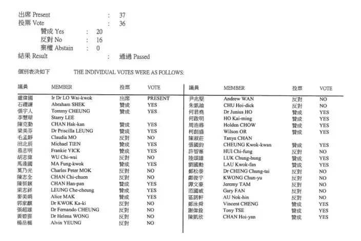 當日反對派有16個議員出席,他們全程坐定定開會,建制派有20個議員出席,但他們就出出入入。建制派出席人數最低潮時只有14人,如果當時表決,「明日大嶼」這個前期研究撥款就玩完,或許政府有運,或許他們嘜票夠緊,等到當日上午11時許投票的時候,建制派所有議員在列,結果以20票對16票,通過撥款申請。