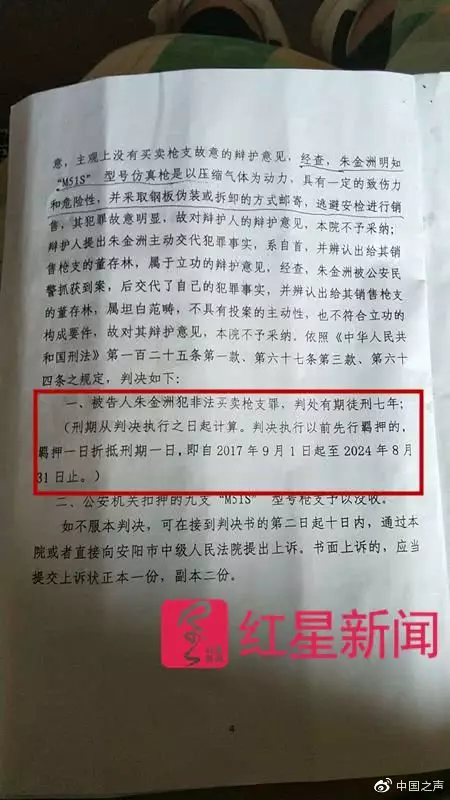 2018年3月22日,因非法買賣槍支罪,朱某某被判刑7年。