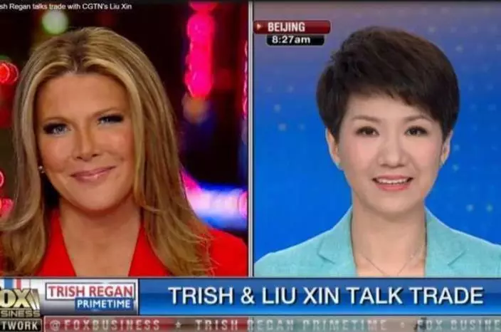 美中女主播貿易戰辯論今早8時開戰,不過這場原以為會充滿火花的辯論,過程平淡,全無火藥味,演變成霍士財經新聞網主播翠西列根(Trish Regan)專訪中國環球電視網主播劉欣。