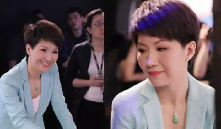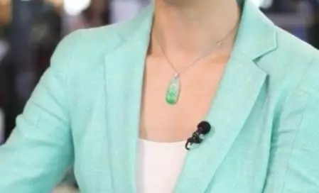劉欣出場時穿了淺綠色外套,有別於她平常主持中國節目時穿的深色外套。更特別的是她戴上一個玉吊墜。