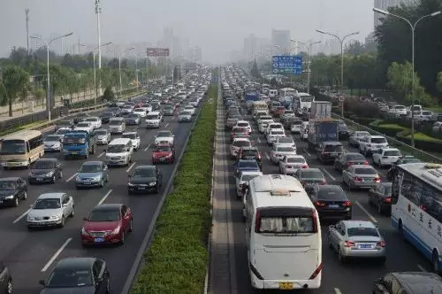 2016年端午節小長假前一天,北京市東四環朝陽公園附近一處路段車流量大。新華社記者鞠煥宗攝