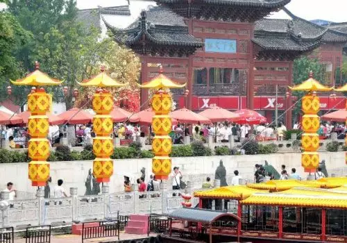 2008年端午節小長假期間,不少外地遊客和南京市民在逛夫子廟、游秦淮河。新華社記者陳琪攝