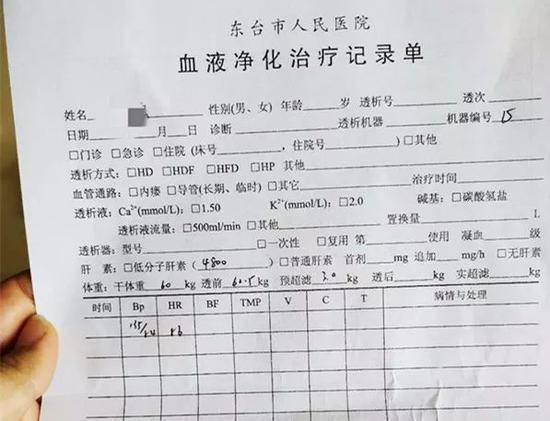 公開信息顯示,東台市人民醫院血液凈化中心成立於1997年,現有5名醫生,14名護士,年透析量接近2萬例次。
