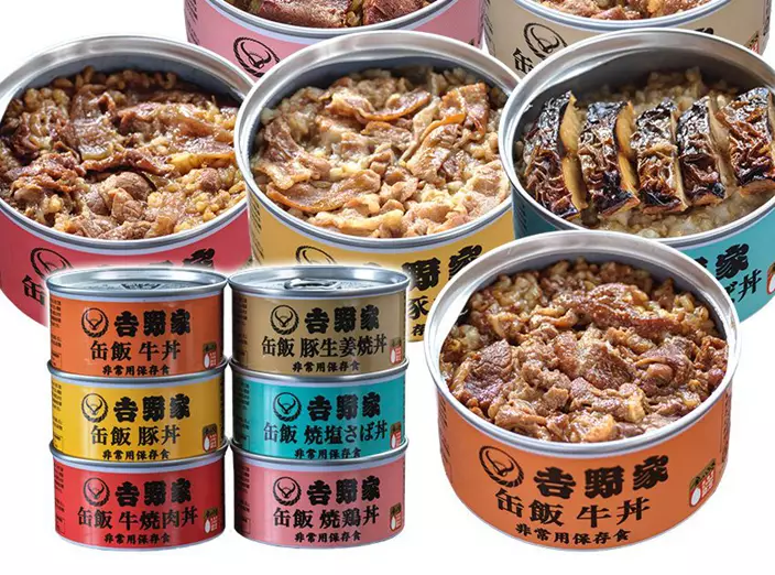 日本不時發生地震,因此不少家庭亦會預先準備保存食品作應急之用。丼飯連鎖店吉野家由今日起更首次推出罐頭飯,不但將「丼飯」裝在罐頭內,更可保存長達3年。