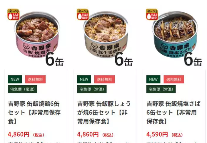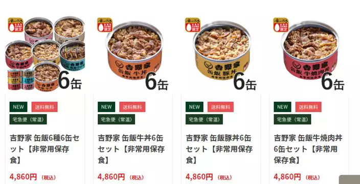 6罐售價為4860円(約$350)。吉野家網頁截圖
