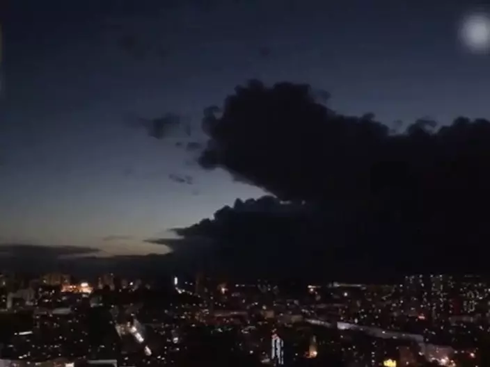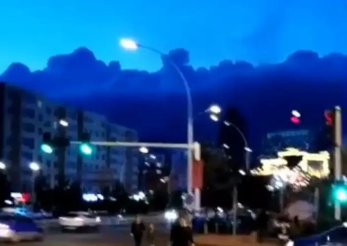 黑龍江雞西在昨晚時分,天空出現大量黑如墨染的烏雲。
