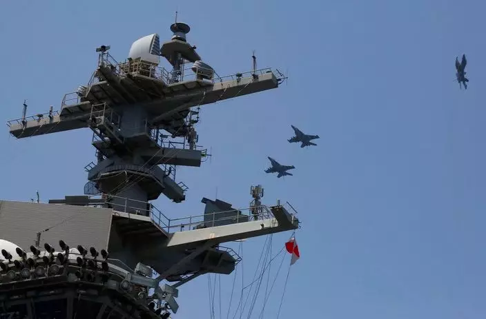 在中美貿易戰期間,美國高調進入南海、台海範圍,對中國作出挑釁。(AP圖片)