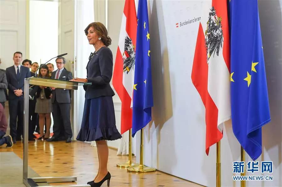 6月3日,布麗吉特·比爾萊因在奧地利維也納發表就職聲明。 布麗吉特·比爾萊因和她領導的奧地利過渡政府3日在維也納霍夫堡宮宣誓就職,這位69歲的前憲法法院院長由此正式成為奧地利史上首位女總理,任期將持續到今年9月大選。 新華社記者郭晨攝