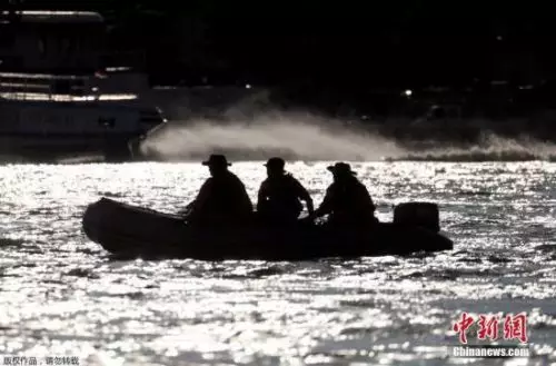 資料圖:當地時間5月29日,匈牙利首都布達佩斯多瑙河河段發生兩船相撞事故。圖為搜救現場。
